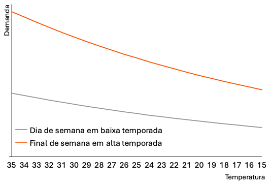 É um fator exógeno que impacta o setor com maior ou menor intensidade, dependendo da natureza da operação. Em estudos realizados pela Noctua foi identificada uma relação direta e marginalmente crescente entre temperatura e demanda, ou seja, a cada grau centigrado a mais, a demanda cresce e quanto mais quente mais rápido é esse crescimento. O setor deve estar preparado para atuar e reposicionar as estratégias de precificação de forma rápida e antecipada de acordo com as crescentes variações de clima.